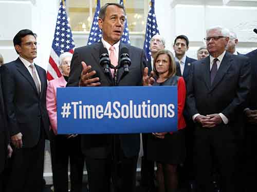 Chủ tịch Hạ viện Mỹ John Boehner phát biểu với giới truyền thông hôm 10-10 Ảnh: Reuters