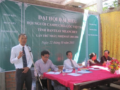 Được sự quan tâm hỗ trợ tích cực của Tổng Lãnh sự quán Việt Nam tại Battambang và sự hướng dẫn, phối hợp của Tổng Hội người Campuchia gốc Việt Nam tại Vương quốc Campuchia, sáng 22/10, tại trung tâm thành phố Srei Sophorn, tỉnh Banteay Meanchey, Hội người Campuchia gốc Việt Nam tỉnh Banteay Meanchey đã tổ chức Đại hội Đại biểu lần thứ nhất, thông qua phương hướng hoạt động và bầu ra Ban Chấp hành Tỉnh hội nhiệm kỳ 2013-2016.