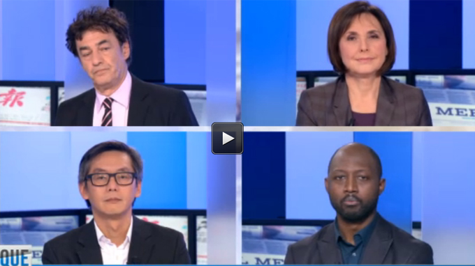 Bốn diễn giả tham gia buổi tọa đàm trực tiếp về Hoàng Sa và Trường Sa trên mục “Kiosque” của Đài TV5: 1/ Joav Toker - nhà báo Israel hiện đang giảng dạy quan hệ quốc tế cho ĐH Sorbonne (Paris) - 2/Alexandra Szacka - nhà báo Canada làm việc cho Đài Radio - Canada - 3/ Võ Trung Dung - nhà báo Pháp gốc Việt - 4/ Louis Keumayou - nhà báo chính trị của Cameroon, chủ tịch Hiệp hội Báo chí Liên Phi (APPA) - Ảnh trích từ chương trình TV5 cùa Pháp
