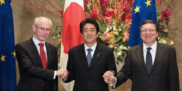Chủ đề quan trọng trong cuộc gặp gỡ này là vấn đề thương mại. Ông Abe cùng Chủ tịch Hội đồng châu Âu Herman Van Rompuy và Chủ tịch Ủy ban châu Âu Jose Manuel Barroso đã nhất trí cần đẩy nhanh đàm phán về một thỏa thuận tự do thương mại nhằm thúc đẩy thương mại hai chiều và tăng cường đầu tư.