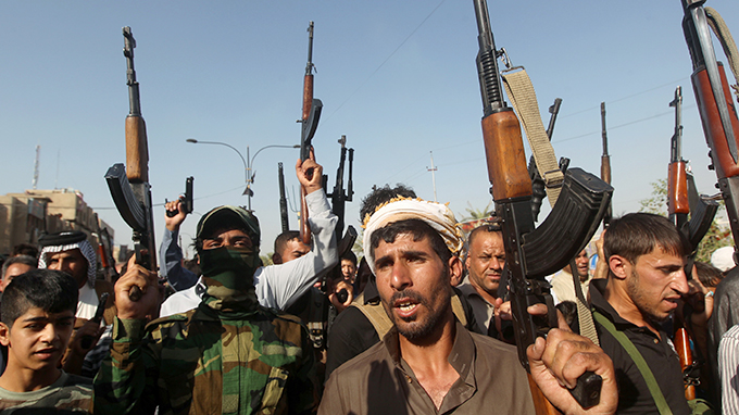 Iraq đang có nguy cơ rơi vào nội chiến mà có thể đe dọa sự tồn vong của chính nước này. Trong ảnh là lực lượng dân quân tình nguyện của chính phủ - Ảnh: AFP