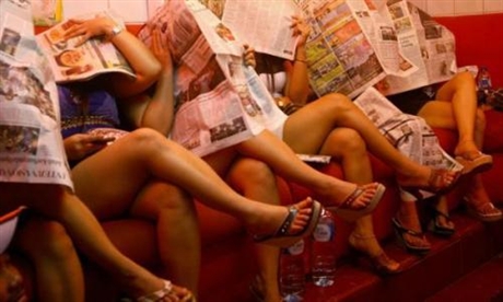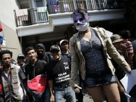 Gái mại dâm ở khu đèn đỏ Dolly dùng báo che mặt mỗi khi cảnh sát Indonesia đến tuần tra khu vực. Ảnh: AFP.
