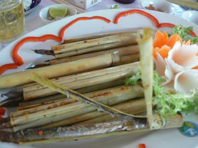 Thưởng thức cá kèo nướng ống sậy