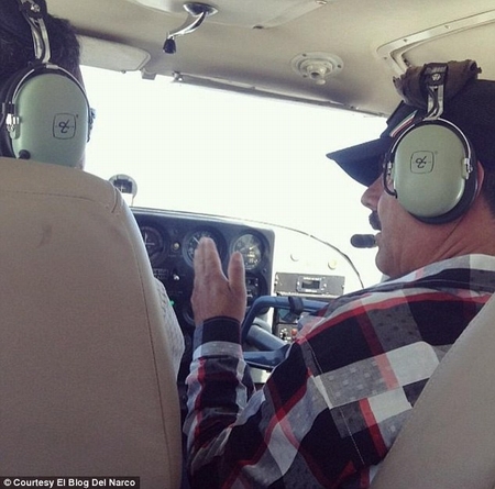 Bức ảnh đầu tiên, Joaquin ‘El Chapo’ Guzman hơi cúi mặt và tay đang cầm một chai bia bên cạnh là một số phụ nữ. Ở bức ảnh còn lại, khuôn mặt của Guzman nhìn rõ hơn khi hắn ngồi trong buồng lái và trò chuyện cùng với viên phi công.