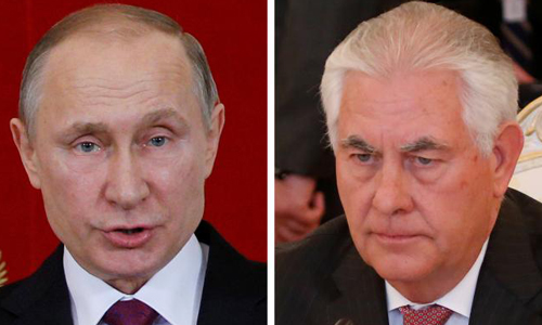 Tổng thống Nga Putin, trái, và Ngoại trưởng Mỹ Rex Tillerson. Ảnh: Reuters