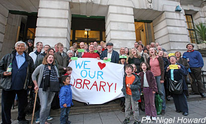 Người dân London trong một chiến dịch cổ động cứu vãn các thư viện cổ khỏi bị đóng cửa. Ảnh: thisislondon.
