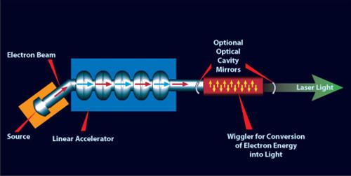 The laser works by passing a beam of high-energy electrons generated by an injector, through a series of strong magnetic fields, causing an intense emission of laser light. ONR hopes to test the FEL in a maritime environment as early as 2018.