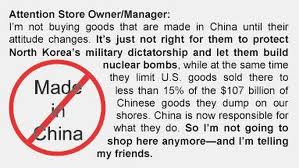 THINK ABOUT THIS: If 200 million Americans each refuse to buy just $20 of Chinese goods, that's a billion dollar trade imbalance resolved in our favor...fast!!