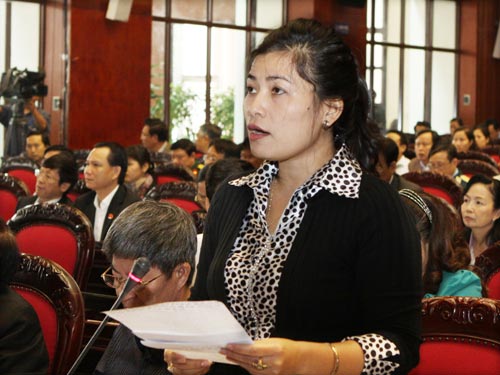 Trong phần chất vấn tại hội trường, ĐB  Đàng Thị Mỹ Hương (tỉnh Ninh Thuận) "phát pháo": Chính phủ có giải pháp cơ bản nào cả trước mắt và lâu dài để doanh nghiệp vượt qua khó khăn? Giải pháp cụ thể đột phá để thực hiện thành công mô hình tăng trưởng kinh tế, đổi mới tái cơ cấu kinh tế? Thủ tướng, Chính phủ đã nhận lỗi về những hạn chế, khuyến điểm. Vậy những biện pháp gì để khắc phục những hạn chế, khuyết điểm?