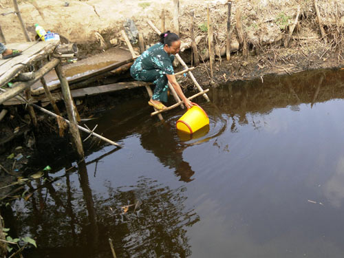 Thiếu nước ngọt, nhiều hộ dân ở vùng sông nước Cà Mau phải sử dụng cả nước nhiễm phèn và mặn ở kênh rạch
