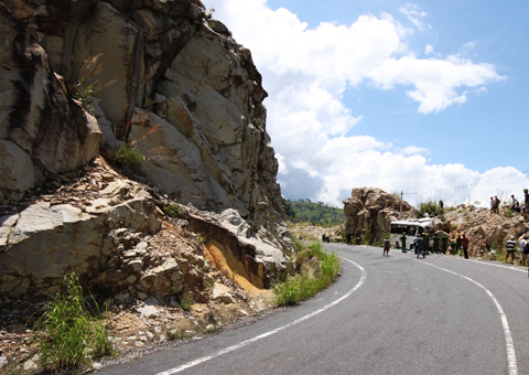 Một tảng đá rất to đè trúng vị trí của tài xế Nguyễn Hải (46 tuổi, thường trú tại Quảng Bình) làm ông này bị gãy chân, đang được chữa trị tại Bệnh viện Đa khoa Khánh Hòa.