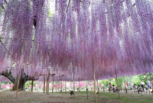 Ở Nhật Bản, loài hoa wisteria hay còn gọi là Hoa Tử Đằng, hoa fuji rất được yêu chuộng. Nếu như ở các nước Phương Tây, hoa hồng là biểu tượng của tình yêu thì ở xứ xở phù tang này Hoa tử đằng lại tượng trưng cho tình yêu bất diệt. Chính vì thế mà ở công viên hoa Ashikaga, người ta đã cho trồng hẳn một rừng hoa wisteria để mọi người có thể thưởng thức và chiêm ngưỡng. Có thể nói không ngoa rằng không ở đâu hoa wisteria lại đẹp và tươi tắn như ở công viên Ashikaga. Những bông hoa wisteria mềm mại như những áng mây và thảm hoa trải dài miên man đến ngút ngàn khiến cho người xem có cảm giác như đang lạc vào chốn bồng lai tiên cảnh.