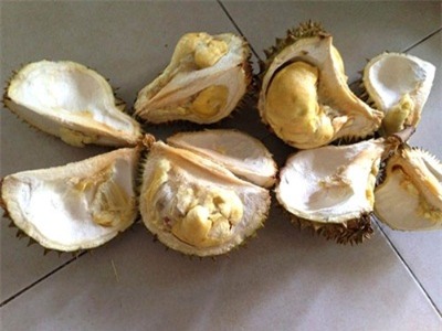 Những trái sầu riêng non bị ép chín bằng hóa chất thường chỉ có vài múi lép, nhạt thếch, thậm chí không ăn được. (Nguồn: Người lao động)