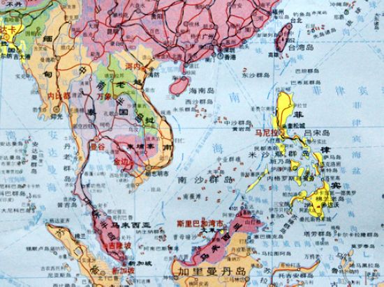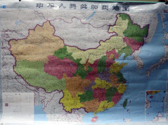 Bản đồ có “đường lưỡi bò” phi pháp. Hai quần đảo Trường Sa và Hoàng Sa của nước ta bị ghi thành Tam Sa và Nam Sa bằng tiếng Trung Quốc.