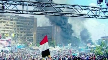 Sáng nay, cảnh sát Ai Cập đã đồng loạt tiến vào giải tán hai khu trại của người biểu tình ủng hộ cựu Tổng thống Morsi tại thủ đô Cairo. Đụng độ dữ dội đã nổ ra khiến hơn 100 người thiệt mạng.