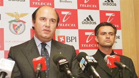 Mourinho đầy tự tin trong ngày ra mắt tại Benfica với chủ tịch Vale Azevedo (trái)...