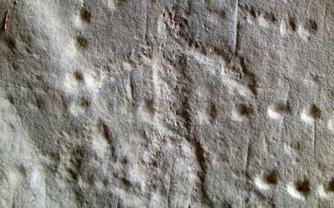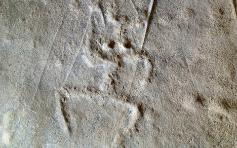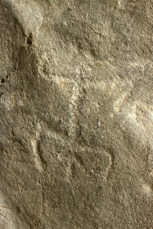 Hình người trong tư thế đứng được khắc sâu trong phiến đá.