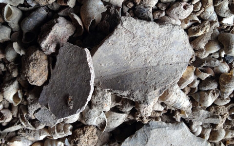 Rất nhiều vỏ sò kèm theo tro bếp ở cửa hang