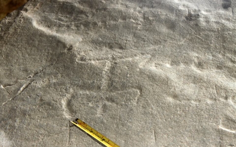 Phiến đá có khắc hình người và nhiều ký tự là cần được giải mã.
