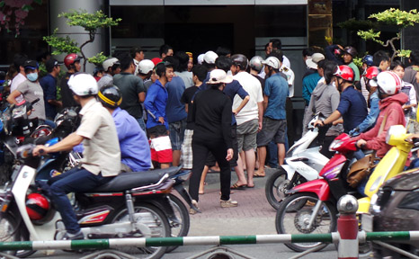 Đám đông tập trung giật đồ cúng cô hồn trước một khách sạn trên đường Lý Thường Kiệt
