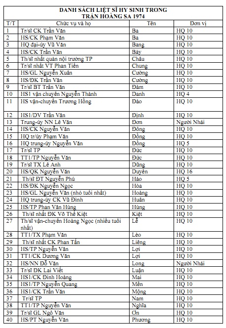 - Cuộc chiến bi hùng đã xảy ra và gương anh dũng hy sinh của 74 chiến sĩ đã quyết tử để bảo vệ Hoàng Sa.