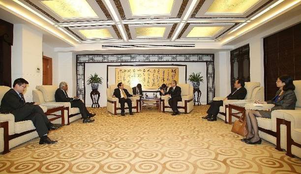 Thứ trưởng Ngoại giao Trung Quốc (thứ 3 từ bên phải) gặp Đại sứ Việt Nam Nguyễn Văn Thơ (thứ ba từ bên trái) và Đại biện lâm thời Malaysia (thứ hai từ bên trái)