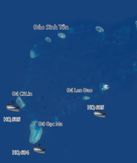 Sau khi hai tàu của ta thả neo được 30 phút, tàu hộ vệ của Trung Quốc từ đá Tư Nghĩa chạy về phía Gạc Ma, có lúc cách ta 500m.