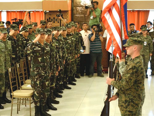 Binh sĩ Mỹ-Philippines tại lễ khai mạc tập trận. Ảnh: AFP