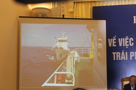 Cũng tại cuộc họp báo, các quan chức Việt Nam đã công bố đoạn clip cho thấy Trung Quốc hạ đặt giàn khoan HD 981 tại tọa độ 15o29’58” vĩ Bắc-111o12’06” kinh Đông, cách bờ biển Việt Nam khoảng 120 hải lý, thuộc thềm lục địa Việt Nam. Các tàu hộ tống giàn khoan của Trung Quốc đã ngang ngược đâm tàu kiểm ngư của Việt Nam khi các tàu đang làm nhiệm vụ bảo vệ chủ quyền lãnh thổ.