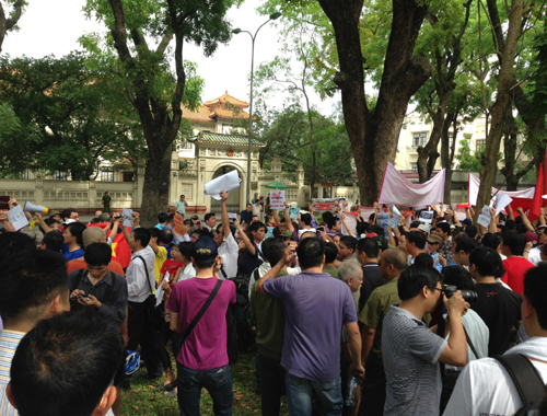 8 giờ 5 phút, người dân ở nhiều nơi bắt đầu tập trung tập trước tượng đài Lê Nin theo hướng ra ngã ba Điện Biên Phủ - Nguyễn Tri Phương (Hà Nội), để phản đối Trung Quốc đưa “Giàn khoan Hải Dương - 981” vào vùng biển của Việt Nam.
