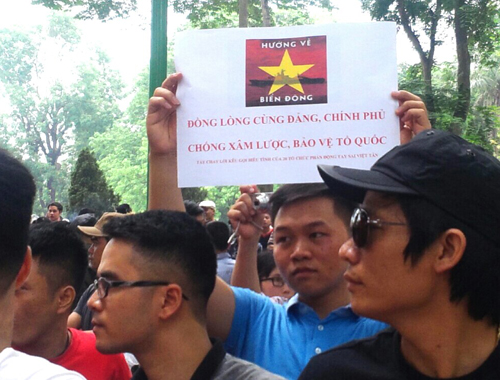 Đoàn tuần hành đem theo khẩu hiệu, băng rôn, biểu ngữ như “Phản đối Trung Quốc đưa Giàn khoan Hải Dương - 981 vào vùng biển Việt Nam”, “Trung Quốc phải lập tức rút Giàn khoan Hải Dương - 981 về nước”…