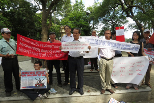 Người dân tại TP.HCM tổ chức hoạt động phản đối việc Trung Quốc hạ đặt trái phép giàn khoan Hải Dương-981 trên vùng biển Việt Nam - Ảnh: Trung Hiếu