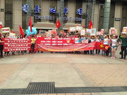 Rất nhiều người Việt Nam tham gia hoạt động biểu tình trước ga xe lửa Đài Bắc rất hăng hái. Một phụ nữ người Việt kết hôn với người Đài Loan và định cư tại Đài Loan cho biết, chị nghe bạn bè ở Việt Nam nói, lần này đồng bào Việt Nam ở trong nước cũng phát động hoạt động biểu tình quy mô lớn, yêu cầu Trung Quốc rút khỏi vùng biển của Việt Nam.