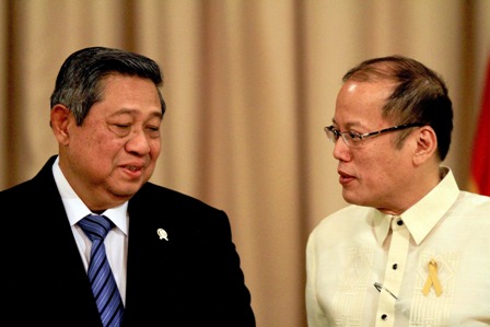 Tổng thống Philippines Benigno Aquino III (phải) và người đồng nhiệm Indonesia Susilo Bambang Yudhoyono trong cuộc họp báo chung tại thủ đô Manila ngày 23/5. Ảnh: THX-TTXVN