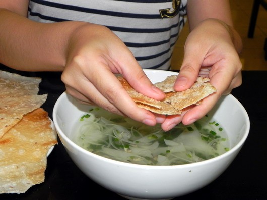 Nếu bạn cũng từng như thế thì hãy một lần bẻ nhỏ bánh cho vào tô, trộn đều. Cảm giác của một gắp vừa có cái dai mềm của mì, đậm đà của thịt, tươi mát của rau, giòn thơm của bánh tráng “đã” hơn nhiều so với những gắp không có thành phần này.