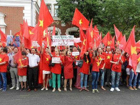 Một số hình ảnh về không khí cuộc mít tinh phản đối Trung Quốc ngày 8/6 của cộng đồng người Việt Nam tại Mátxcơva: