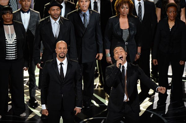 Common và John Legend trình bày ca khúc "Glory" trên sân khấu lễ trao giải Oscar lần thứ 87. Ảnh: Billboard