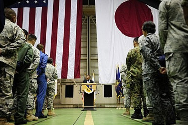 Theo một hiệp ước năm 1960, Mỹ cam kết bảo vệ Nhật Bản khỏi sự xâm lược từ bên ngoài. Khoảng 50.000 lính Mỹ hiện đang đóng tại Nhật Bản.