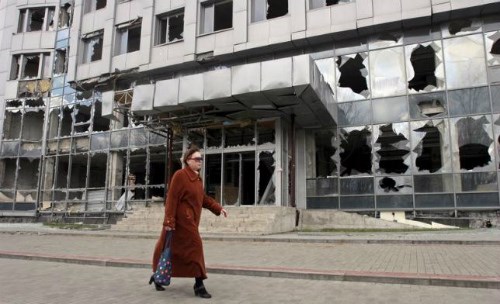 Một tòa nhà bị hư hại tại Donetsk, miền đông Ukraine - Ảnh: Reuters