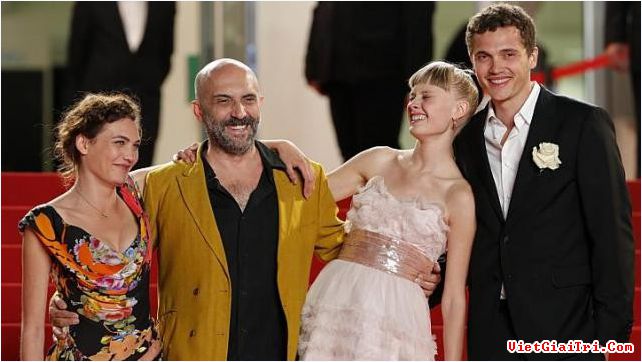 Aomi Muyock, đạo diễn Gaspar Noe, diễn viên Klara Kristin và Karl Glusman tại buổi công chiếu phim Love ở Cannes ngày 20/5.