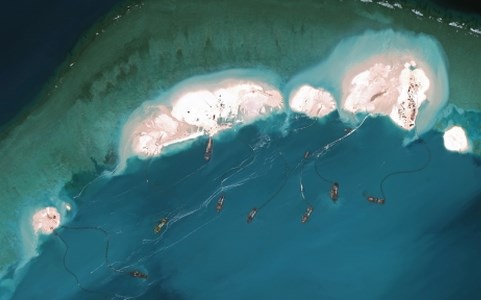 Hoạt động cải tạo đảo phi pháp của Trunq Quốc ở Biển Đông khiến các nước hết sức lo ngại (Ảnh AP)