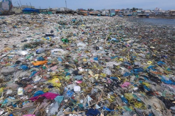 Rác tại vùng ven biển qua xã Chí Công, huyện Tuy Phong, tỉnh Bình Thuận. Ảnh: Lekima Hùng.