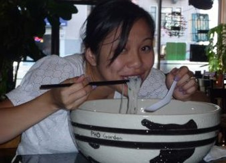 Một cô gái tham gia thi ăn phở. Ảnh: Phở Garden.