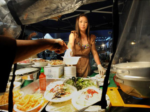 Trứng vịt lộn, bánh da lợn, chè thập cẩm, thịt xiên nướng... có đầy đủ ở chợ đêm của người Việt ở Little Saigon, California (Mỹ).