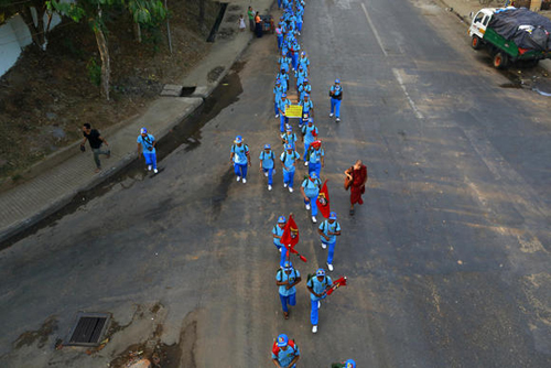 Người dân Myanmar tuần hành phản đối dự án thủy điện Myitsone. Ảnh: Reuters