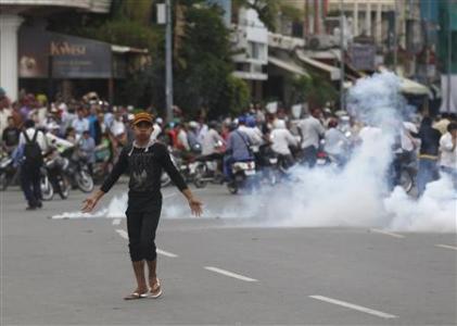 Theo thông tin của hãng tin Reuters, một người đàn ông đã bị bắn vào đầu và tử vong khi cố vượt qua nhóm những người ủng hộ đảng CNRP để trở về nhà.
