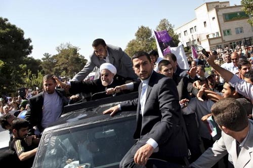 Khi mới đặt chân xuống sân bay, Tổng thống Iran đã được nhiều người ủng hộ chào đón bằng khẩu hiệu “cảm ơn Rouhani” khi ông này đứng vẫy chào đám đông qua cửa sổ trời của chiếc xe hộ tống.