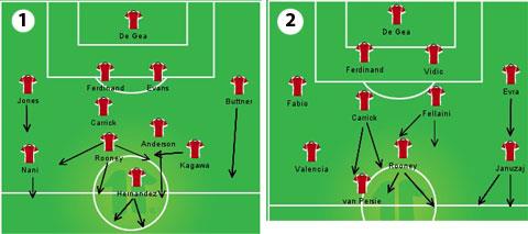 Đến trận gặp Shakhtar, M.U trở lại với lối chơi cơ bắp khi dùng 3 tiền vệ trung tâm là Carrick, Fellaini, Cleverley. Vậy là chính Moyes cũng chưa nhất quán sẽ để M.U đá theo phong cách nào.