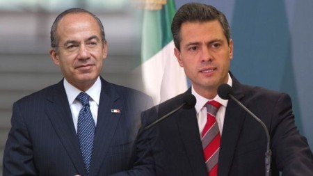Tổng thống Mexico Pena Nieto (phải) và người tiền nhiệm Calderon