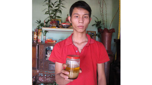 Anh Nguyễn Văn Khánh và lọ mỡ trăn còn lại - Ảnh: Lê Anh